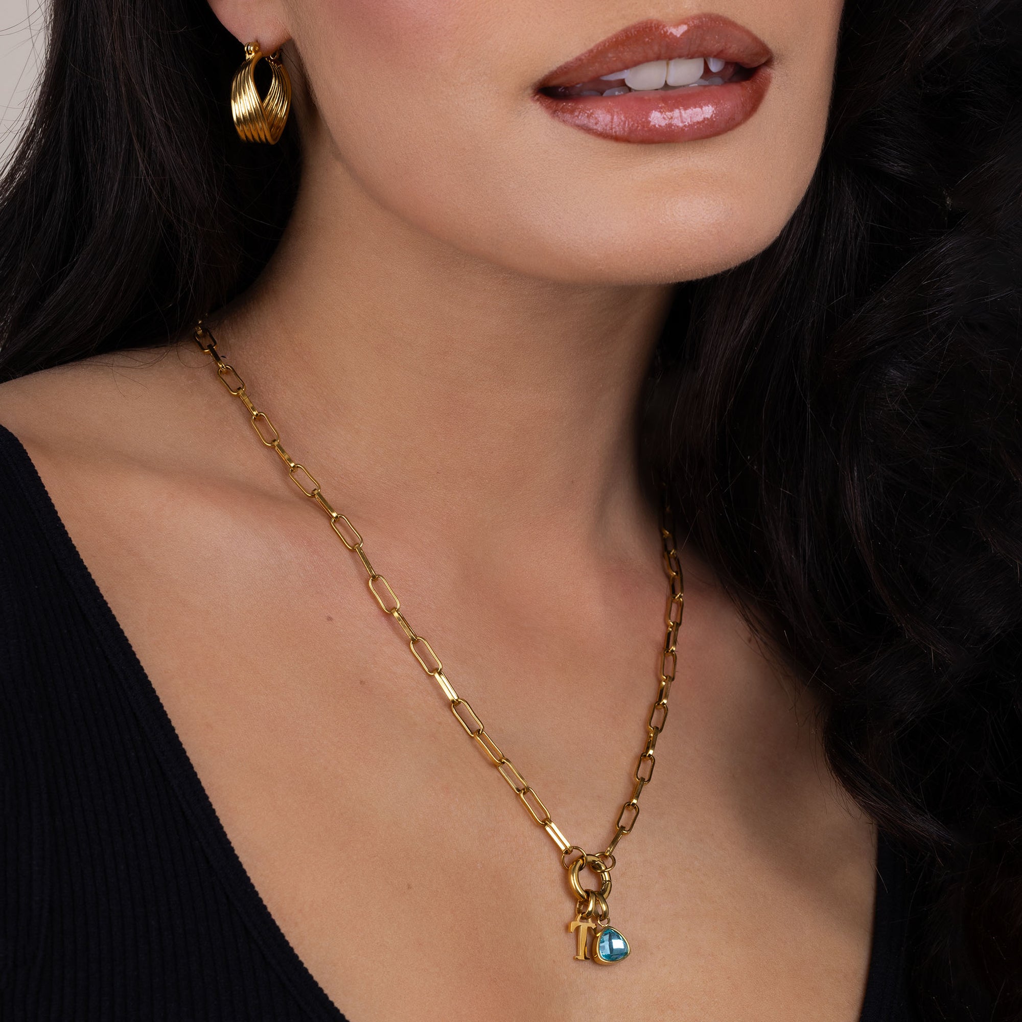 Letter & birthstone link chain gold